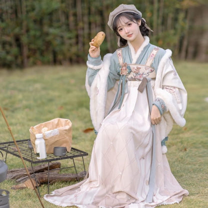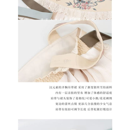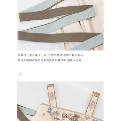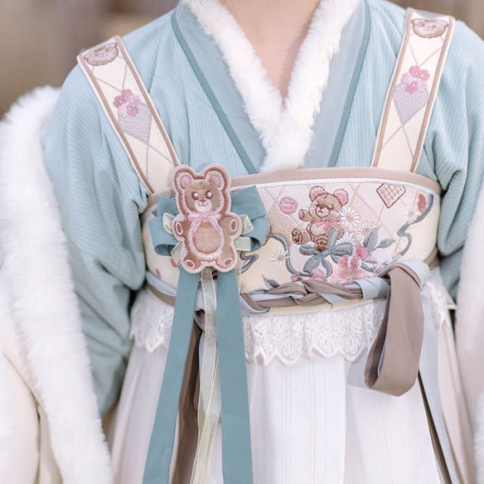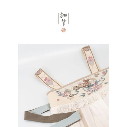 Long-Sleeve Floral Print Hanfu Top / Bear Ornament / Shawl