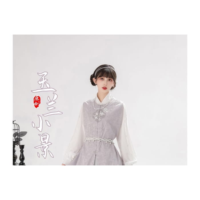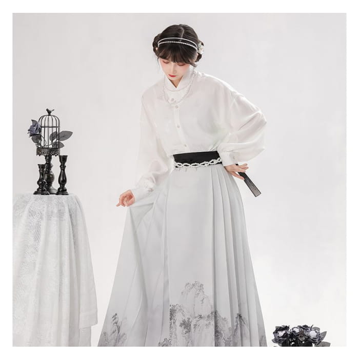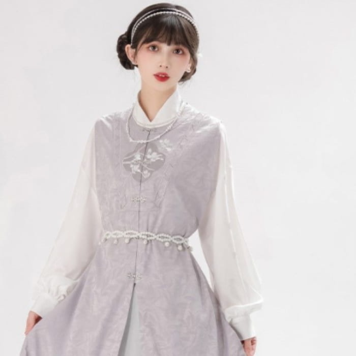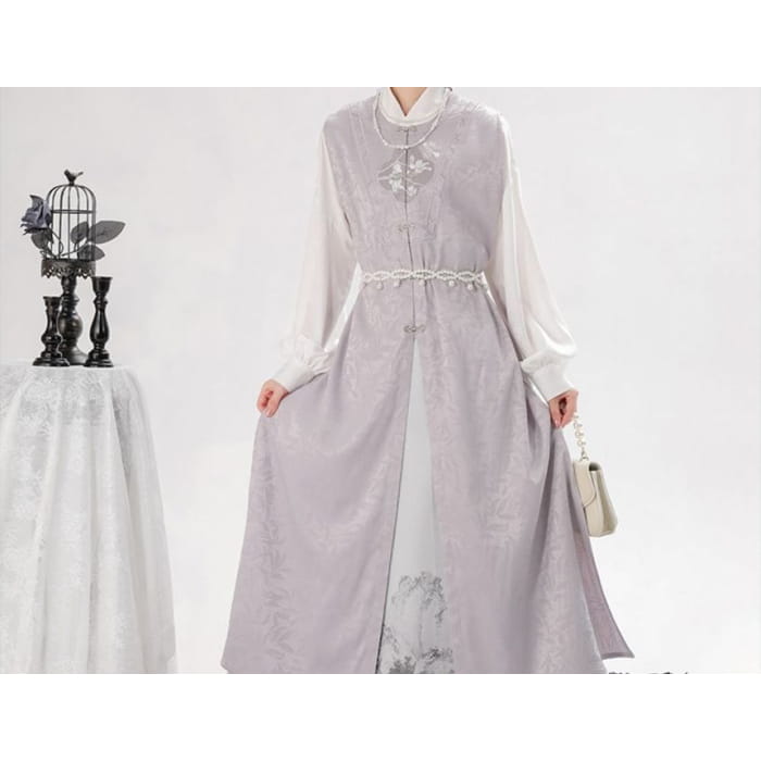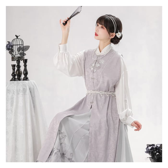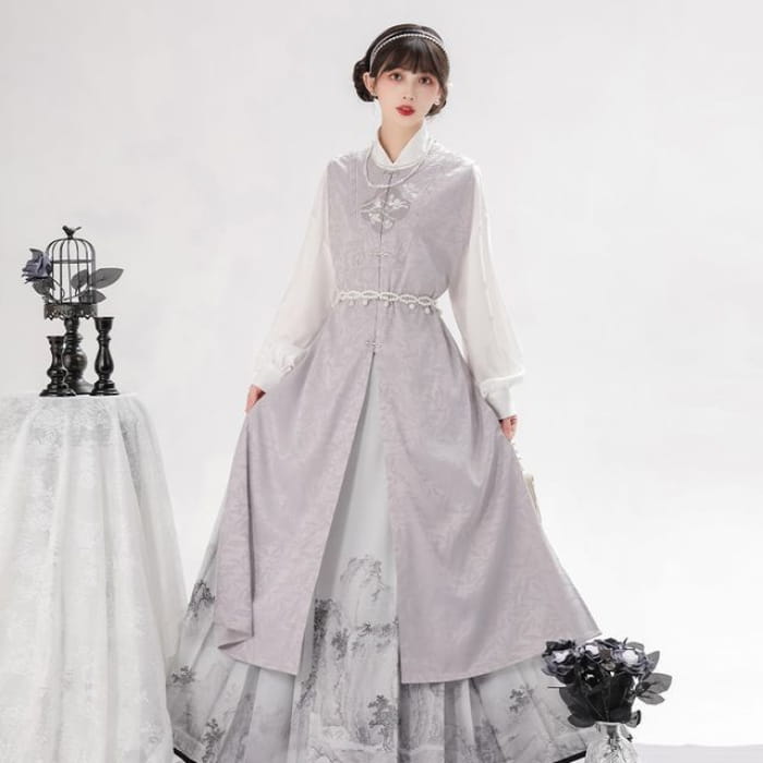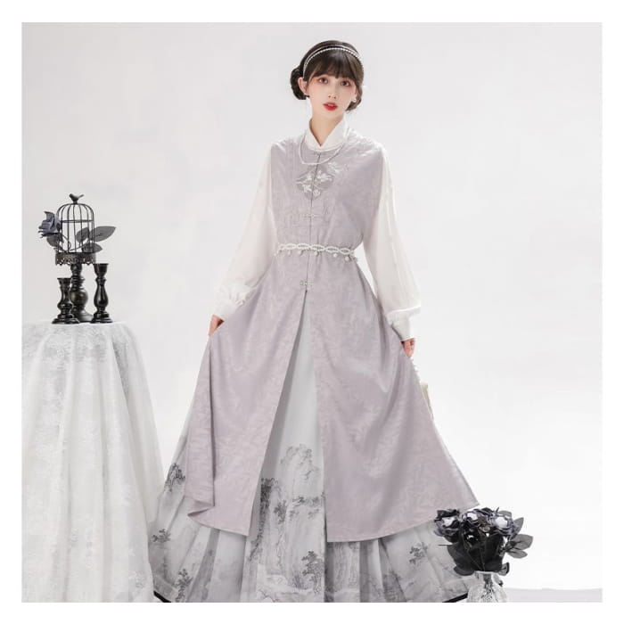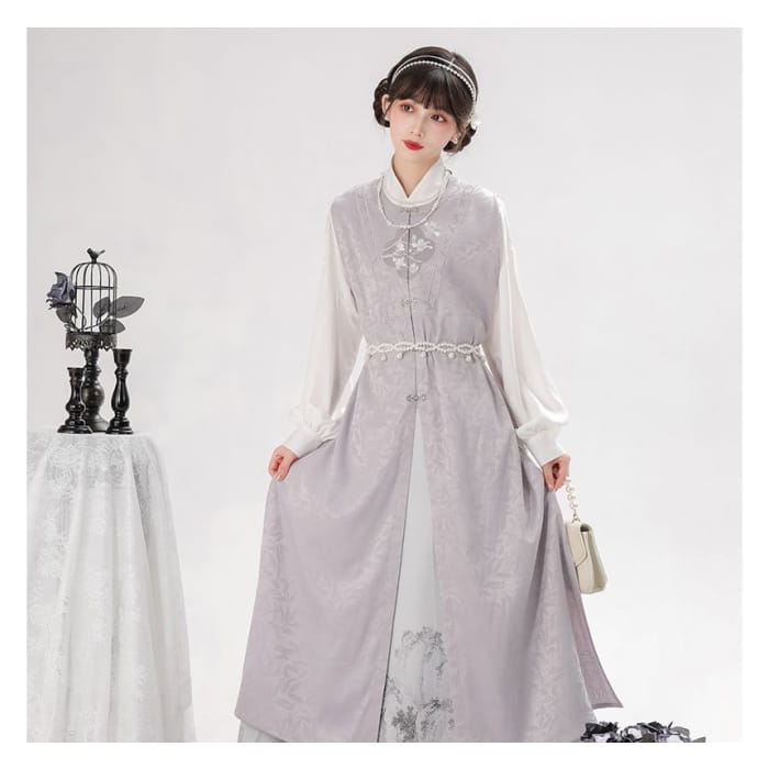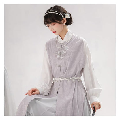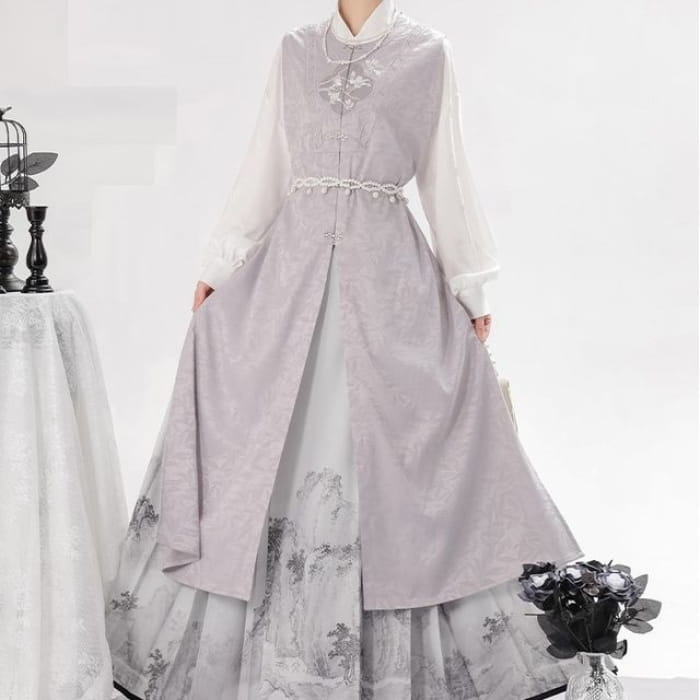 Long-Sleeve Floral Print Traditional Chinese Costume Set