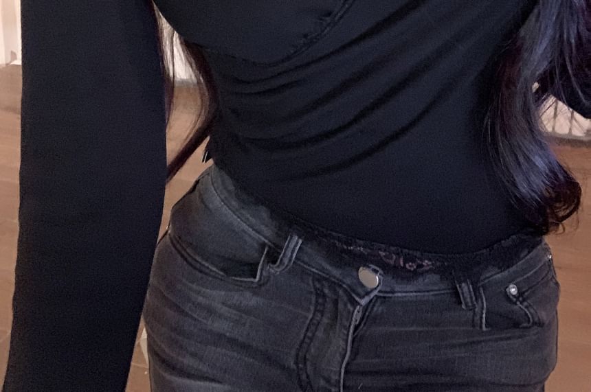 Long-Sleeve Lace Crop + Top Tee Trim V-Neck Set: Halter-Neck