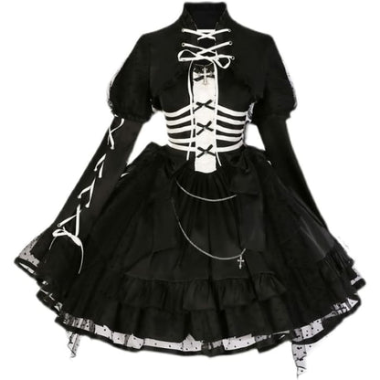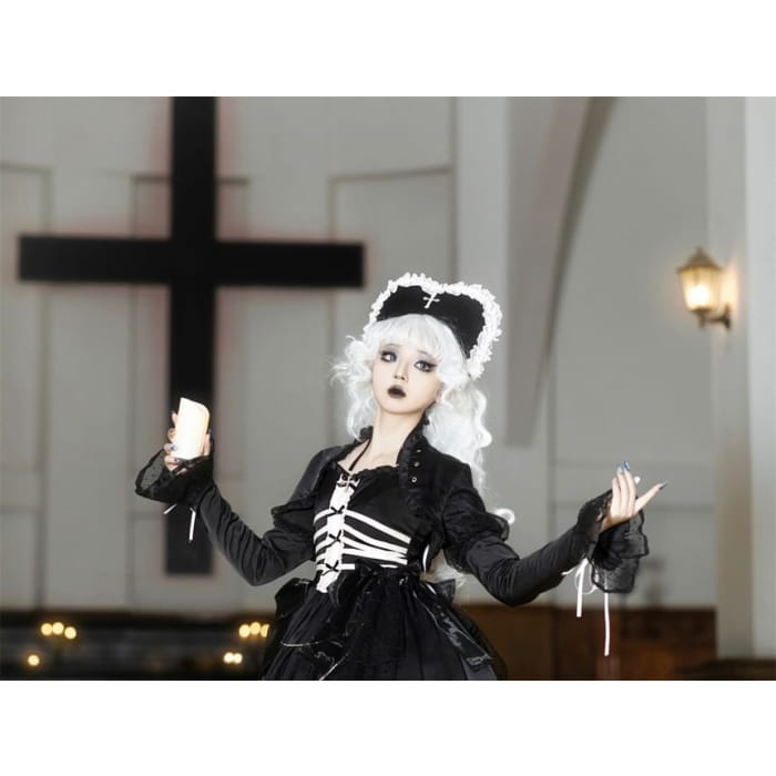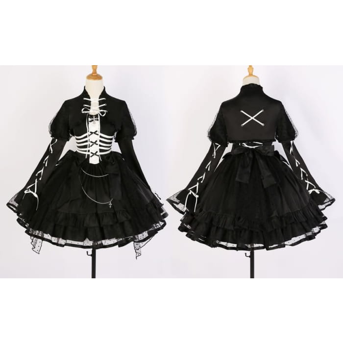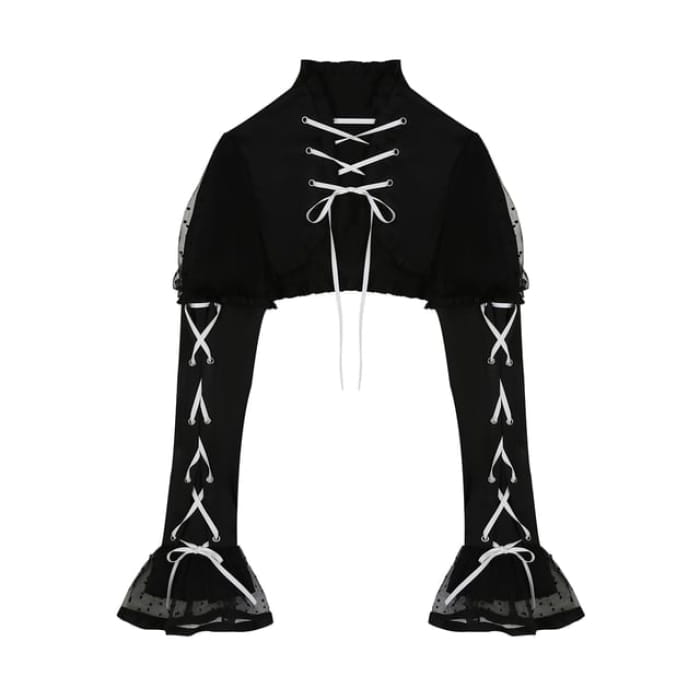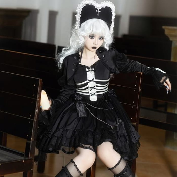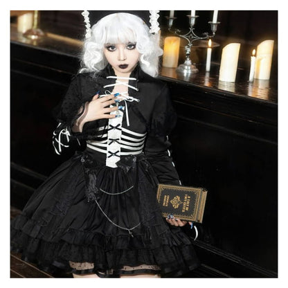 Lolita Long-Sleeve Lace Up Blouse / Spaghetti Strap Mini A-Line Dress / Set