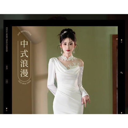 Long-Sleeve Open Back Plain Maxi Mermaid Dress