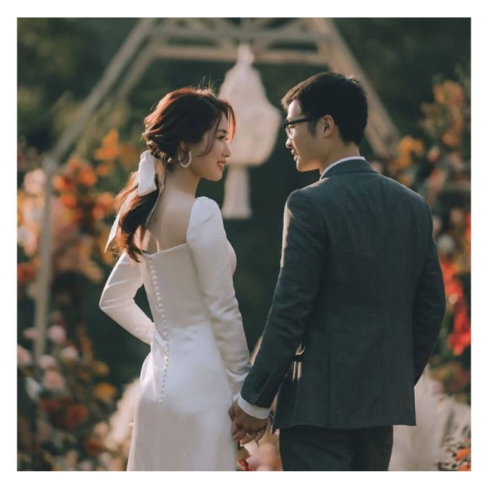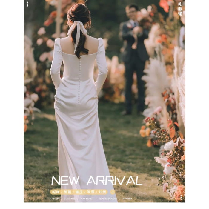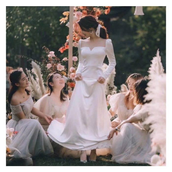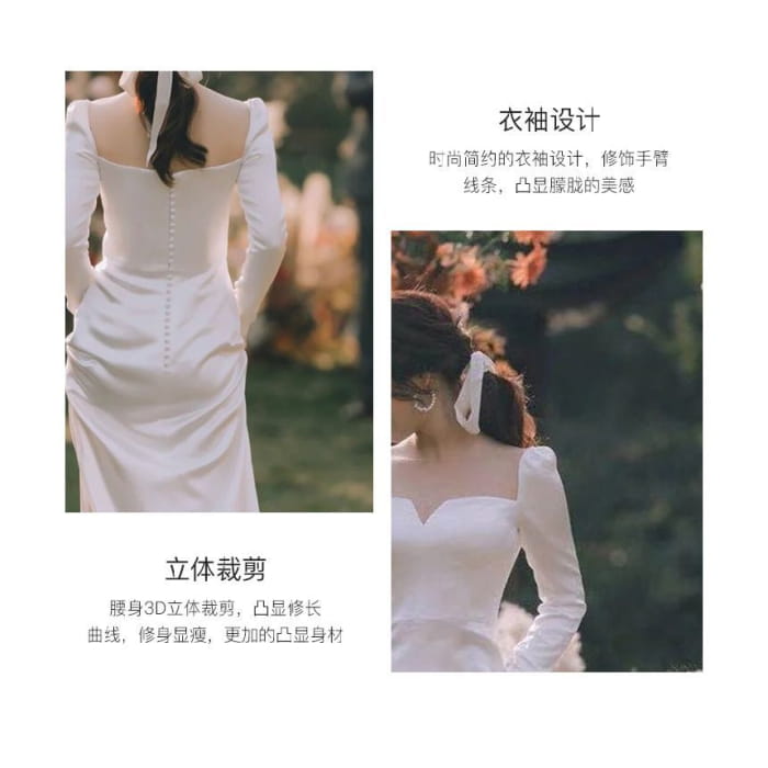 Long-Sleeve Square Neck Plain A-Line Wedding Gown