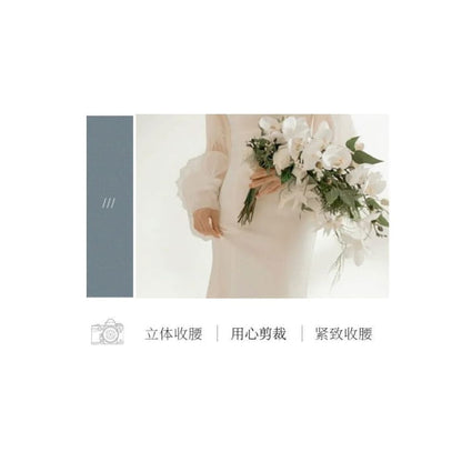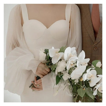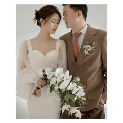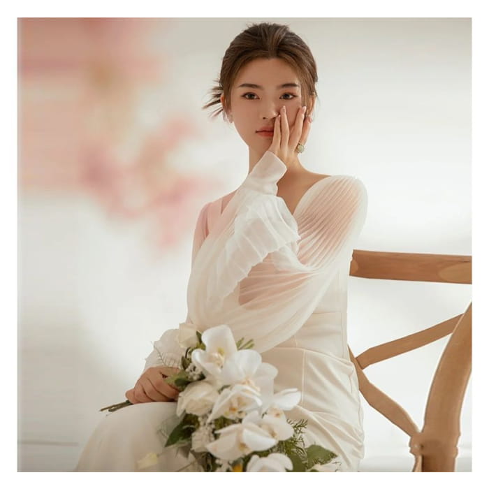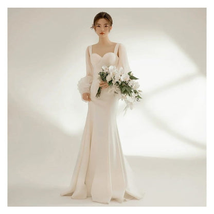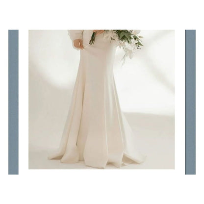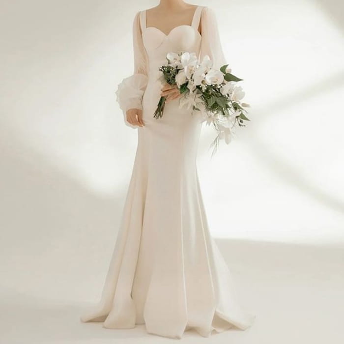Long-Sleeve Sweetheart Neckline Plain Sheath Wedding Gown