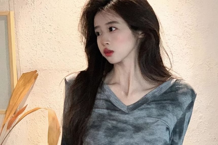 Long-Sleeve V-Neck Tie Dye T-Shirt