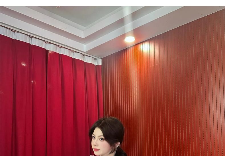 Mermaid Evening Cutout Sequined Puff-Sleeve Gown