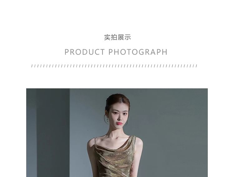 Mermaid Neck Sleeveless Cowl Sequin Open Evening Back Gown