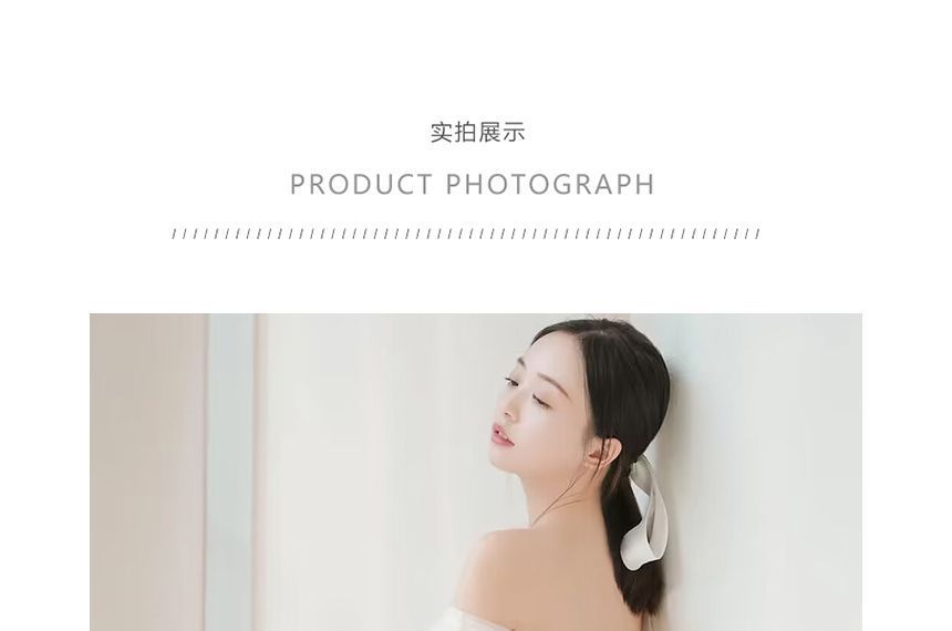 Short-Sleeve Off Shoulder Plain Bow Ruched Panel Mesh Mermaid Wedding Gown
