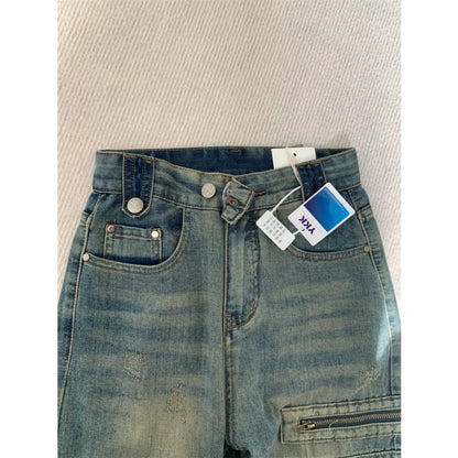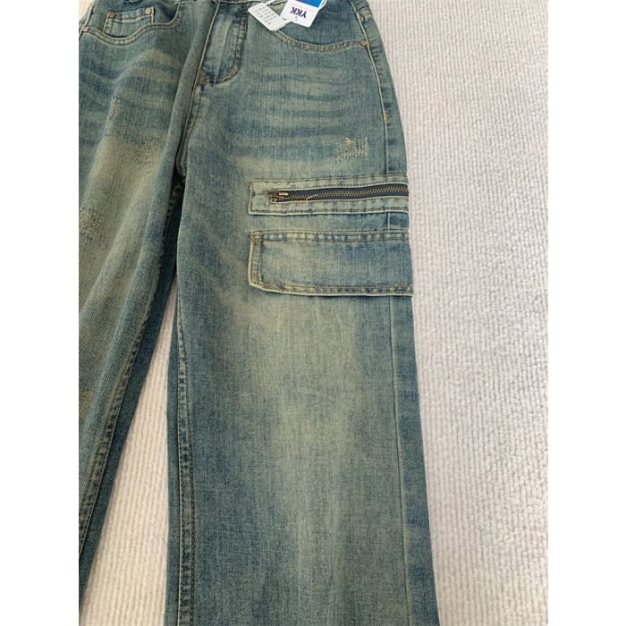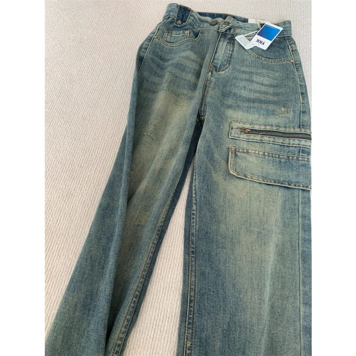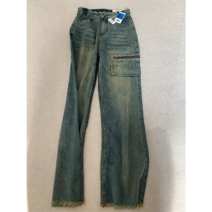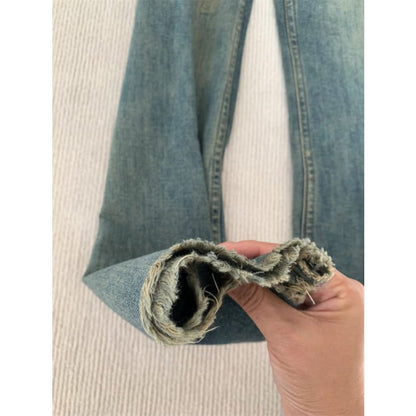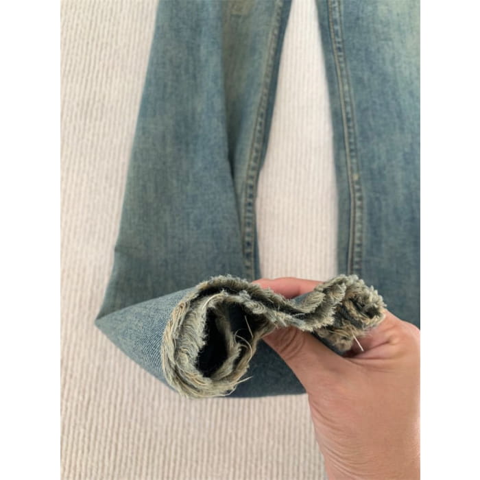 Mid Rise Fringed Hem Washed Wide Leg Jeans