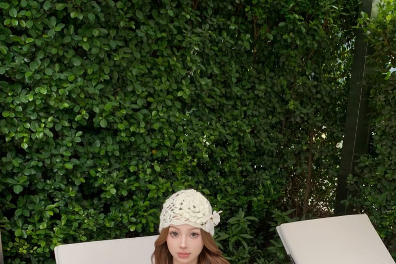 Scoop Neck Plain Flower Detail Halter Top / High Rise Floral Mini Pencil Skirt