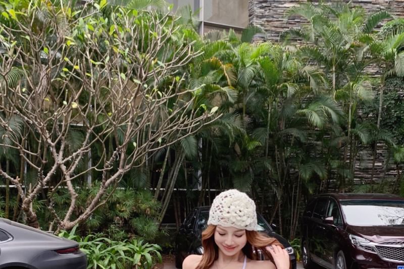 Mini Flower High Top Halter / Scoop Rise Skirt Detail Floral Pencil Neck Plain