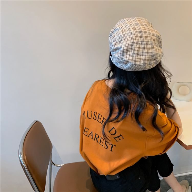 Neck Crew Print T-Shirt Lettering Short-Sleeve