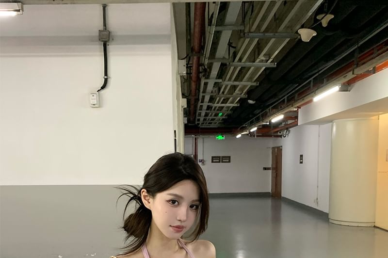 Neck Scoop Side-Slit Plain Fit Halter Top Slim