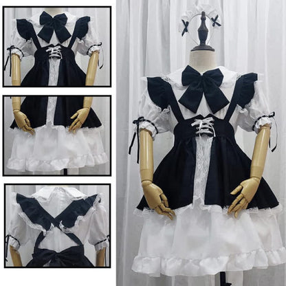 Neutral Lace Up Ruffled Maid Dress With Bow Tie