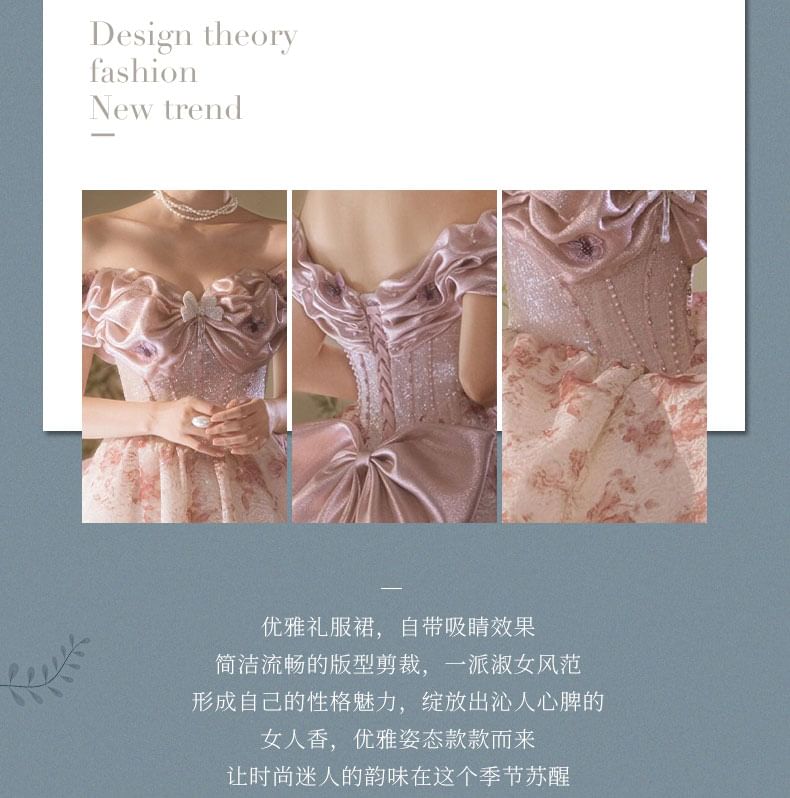 Off Shoulder Ruffle Trim Floral Print A-Line Evening Gown