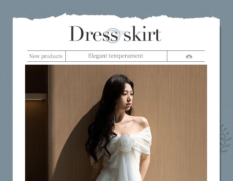 Off-Shoulder Plain Floral Accent Trained Mesh A-Line Wedding Gown