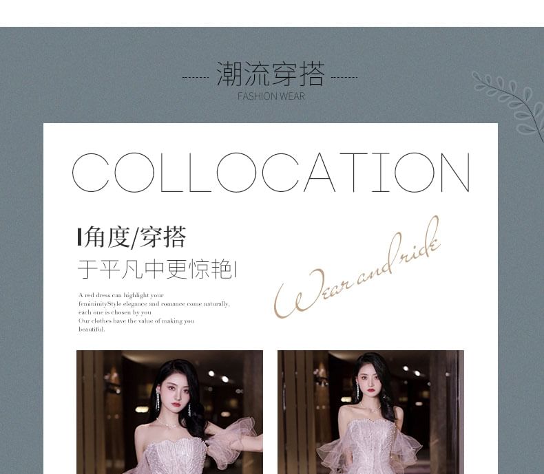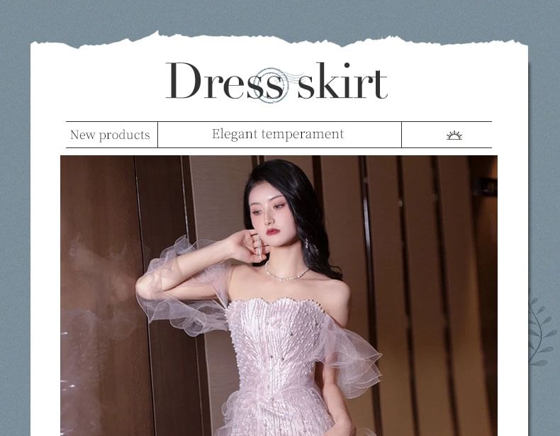 Off-Shoulder Sequin Mesh Panel Faux Pearl Accent Mermaid Evening Gown