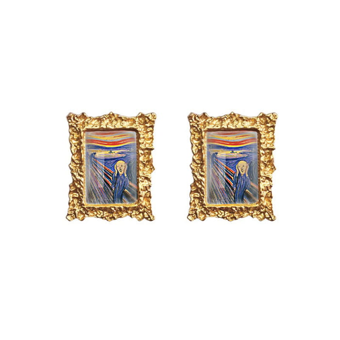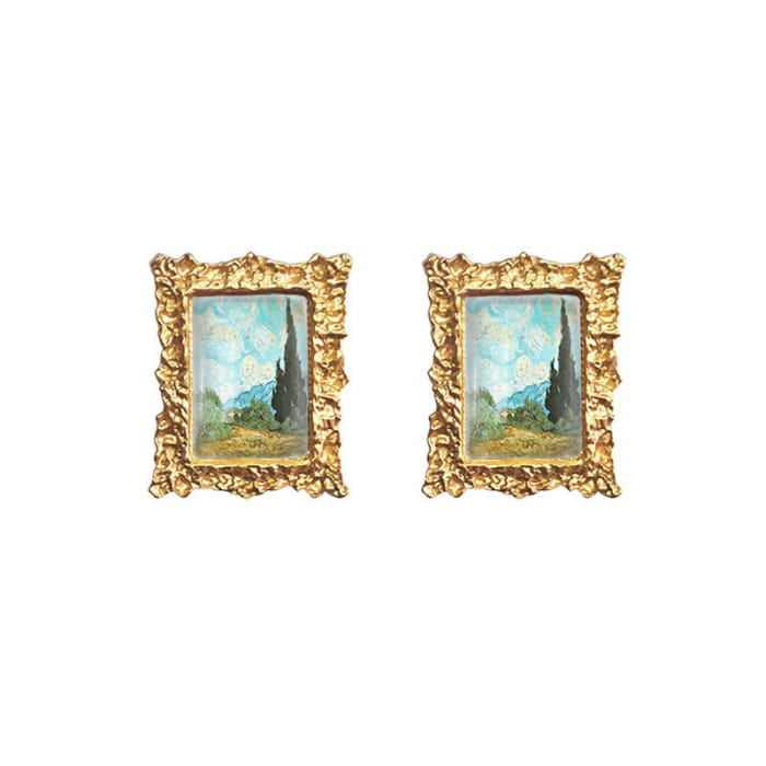 Introducing our elegant Oil Painting Impressionism Earrings. Made with high-quality materials and featuring a stunning oil painting impressionism design, these earrings are a perfect addition to your jewelry collection. Show off your unique style and make a statement with these one-of-a-kind earrings.