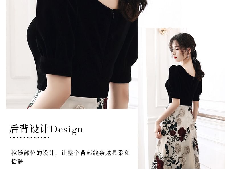 Panel Dress Short-Sleeve Evening Embroidered Neckline Sweetheart Cocktail Gown Floral A-Line /