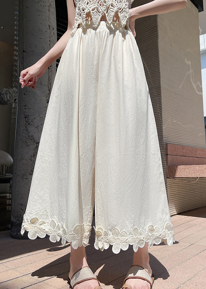 Original Design Black Floral Patchwork Cotton Wide Leg Pants Summer
