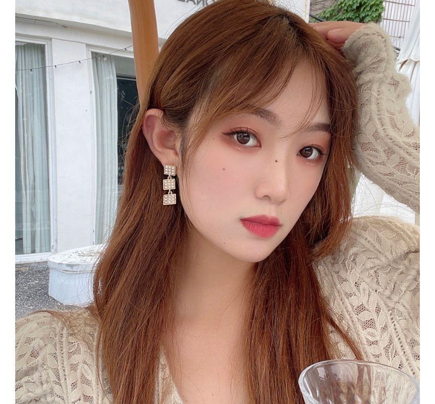Square Faux Pearl Alloy Dangle Earring