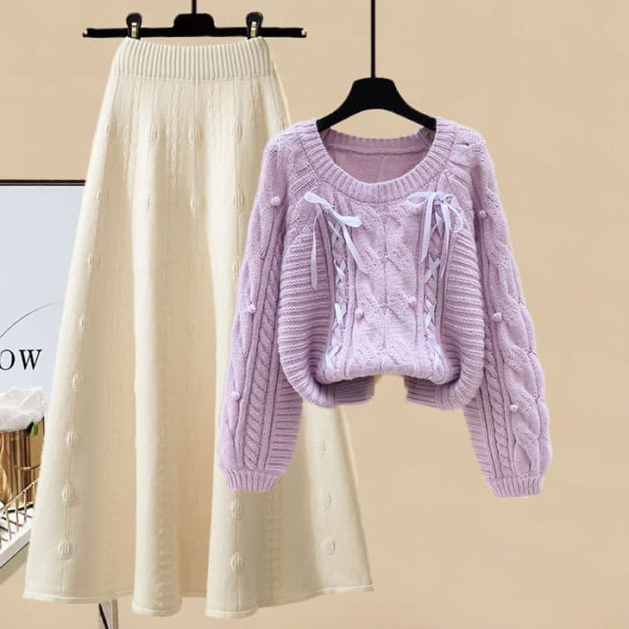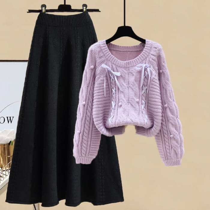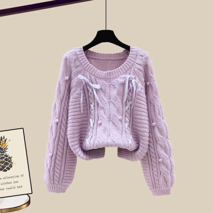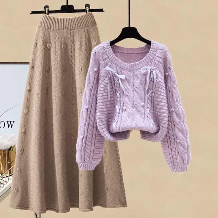 Pills Decor Cable Knit Sweater Skirt Set