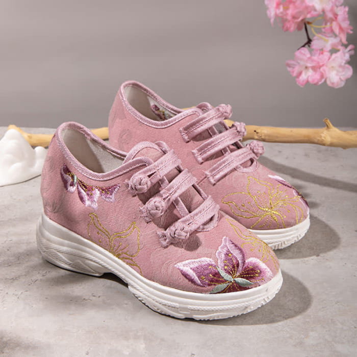 Elevate any outfit with the Pink Blossom Embroidery Buckle Platform High Heels Shoes. The stunning pink blossom embroidery adds a touch of elegance, while the buckle and platform design provide comfort and style. Perfect for a night out or special occasion, these shoes will make you stand out in the best way possible.