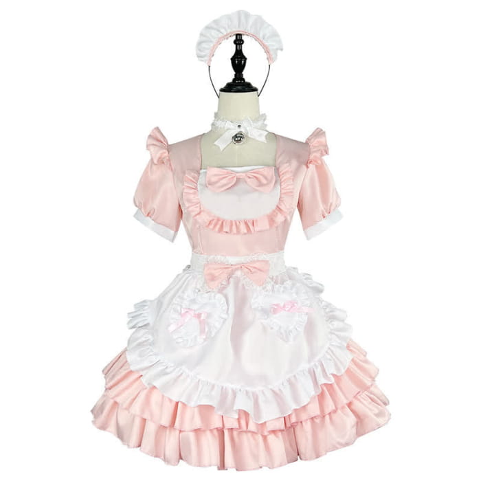 Pink Lolita Love Heart Bow Knot Ruffled Maid Dress