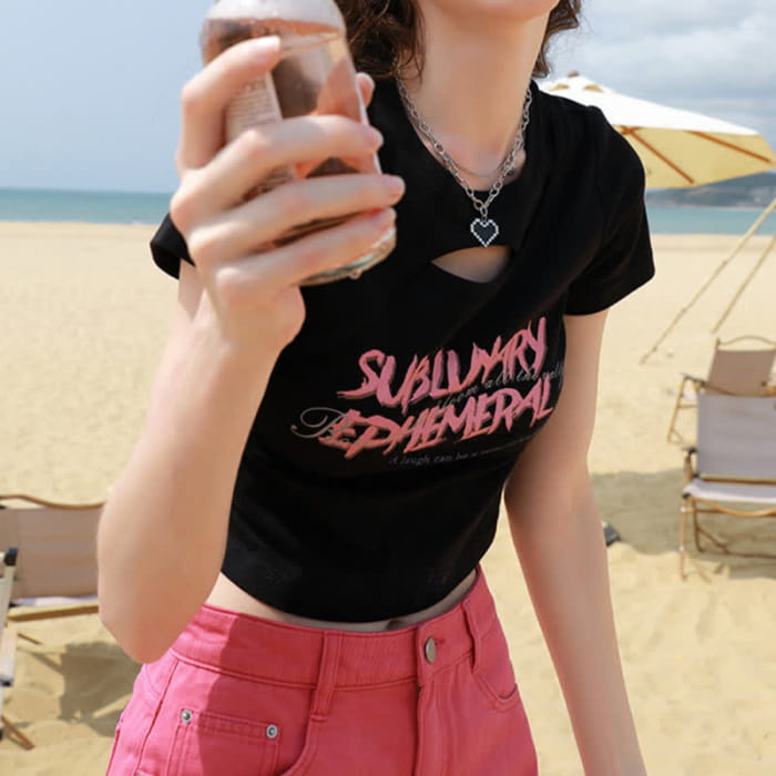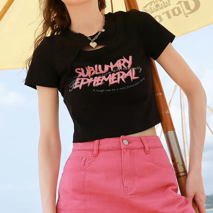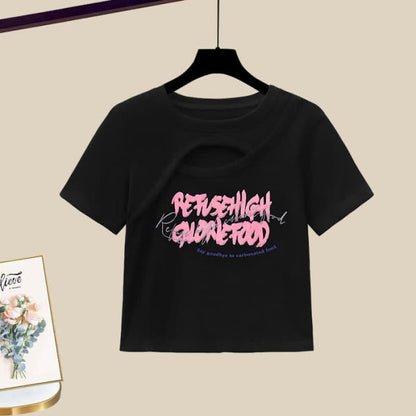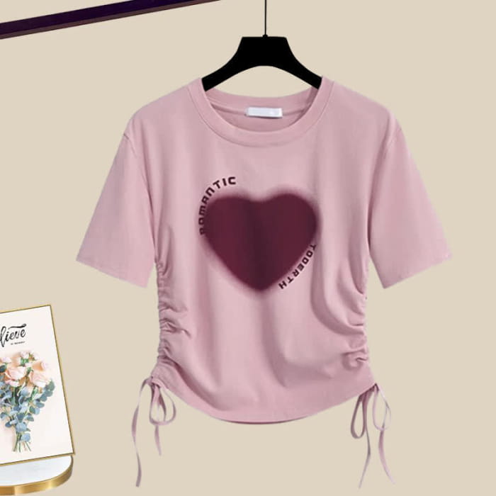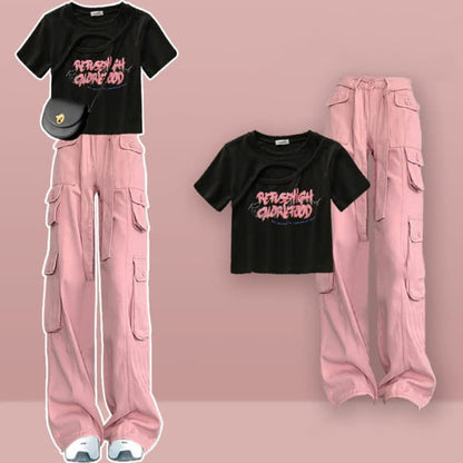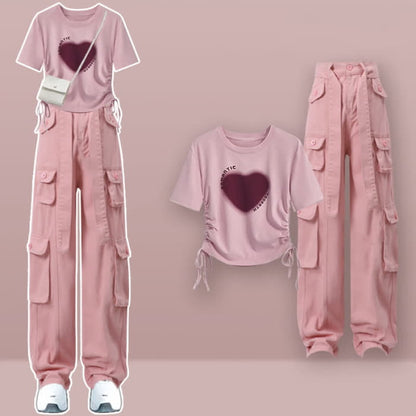 Pink Love Heart Print Crop Top T-Shirt Pink Cargo Pants