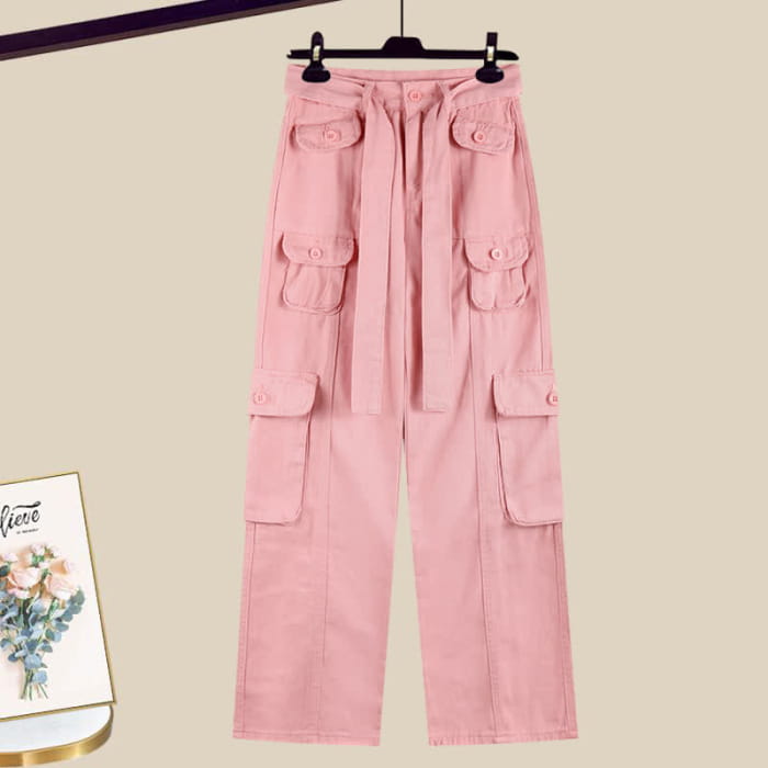 Effortlessly chic and stylish, our Pink Love Heart Print Crop Top T-Shirt and Pink Cargo Pants combo is the perfect ensemble for any fashion-forward woman. The delicate love heart print adds a touch of elegance to the crop top, while the cargo pants offer both comfort and functionality. Stand out and make a statement in this must-have outfit.