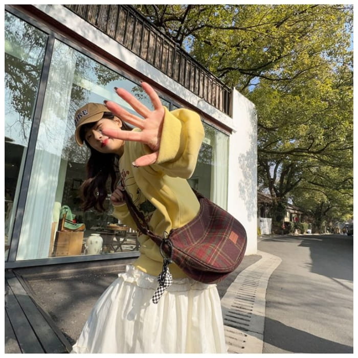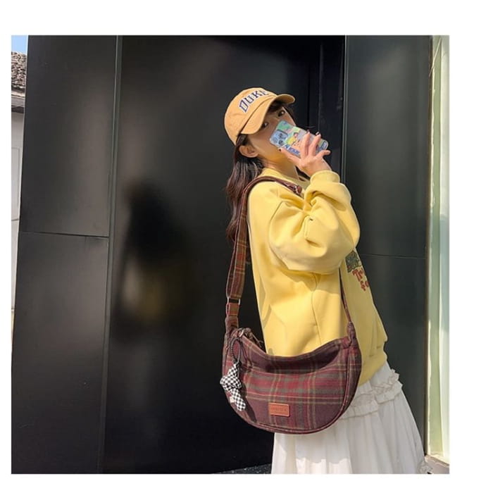 | Color: | Set - Crossbody Bag & Bag Charm - Plaid - Green |