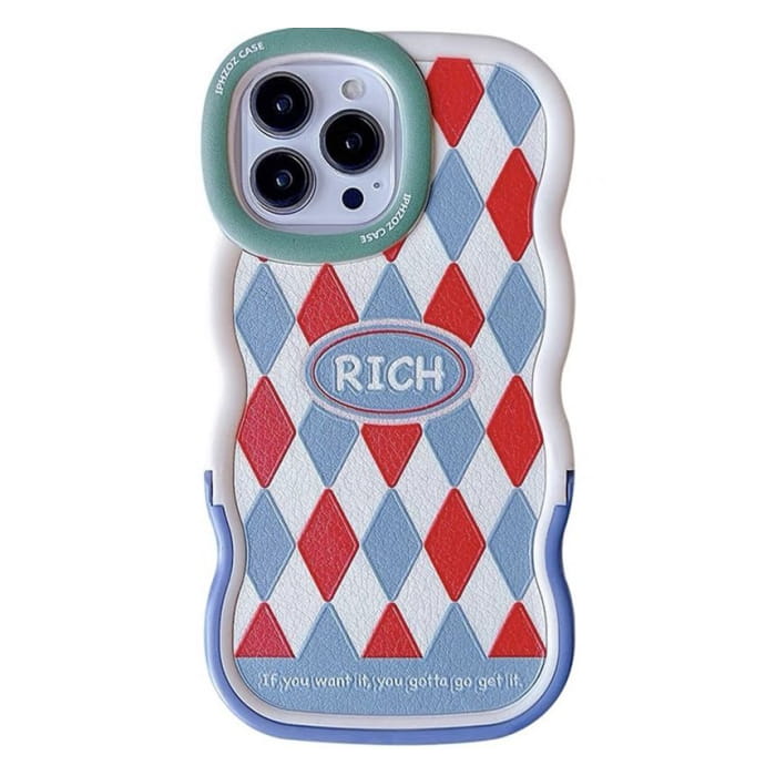 Plaid / Argyle Stand Phone Case - iPhone XR / XS Max / 11 / 11 Pro / 11 Pro Max / 12 / 12 Pro / 12 Pro Max / 13 / 13 Pro / 13 Pro Max / 14 / 14 Pro / 14 Plus