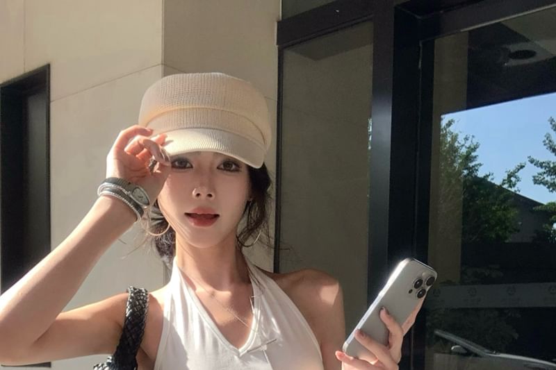 Halter Plain Asymmetrical Ruffle Top