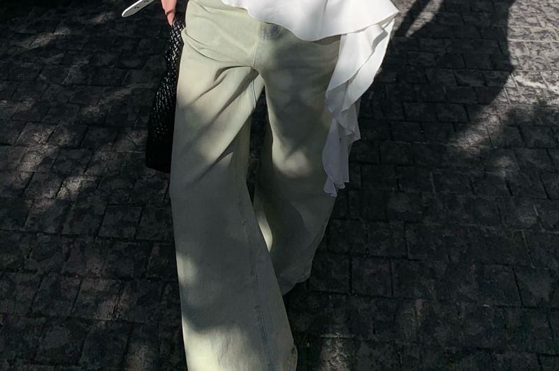 Plain Top Halter Asymmetrical Ruffle