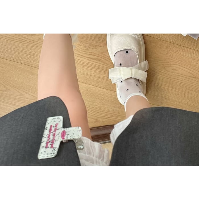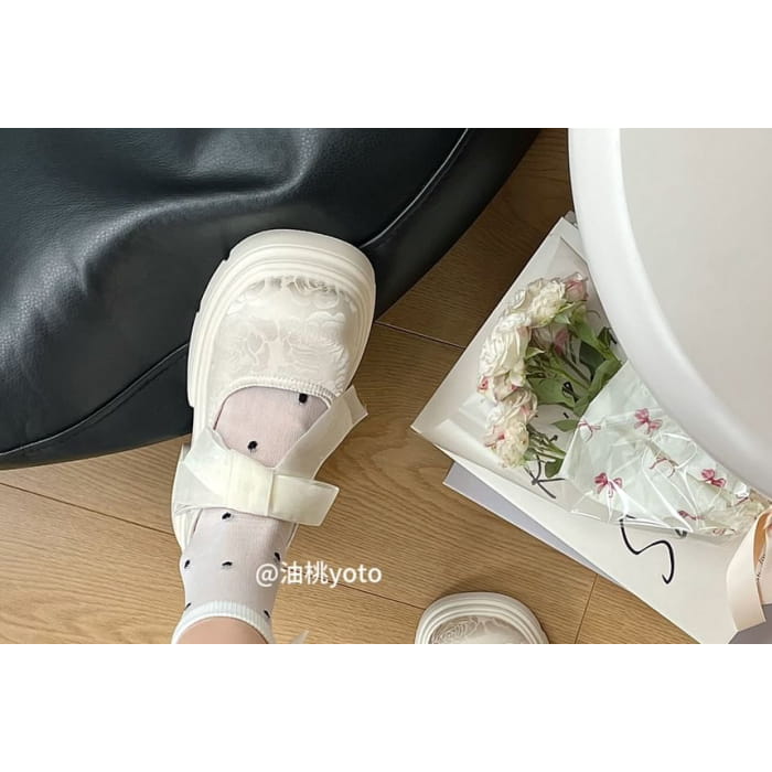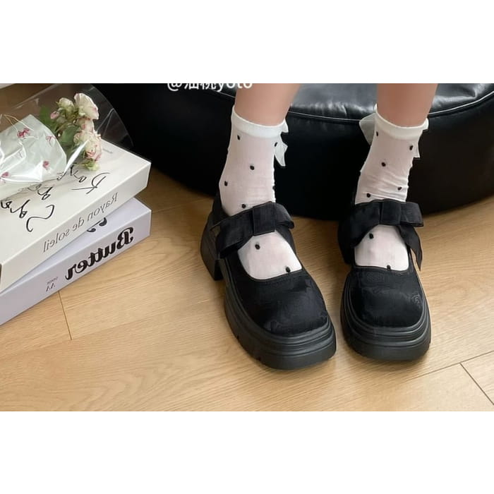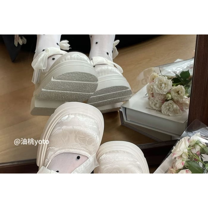 Platform Adhesive Strap Floral Jacquard Bow Accent Mary Jane Shoes