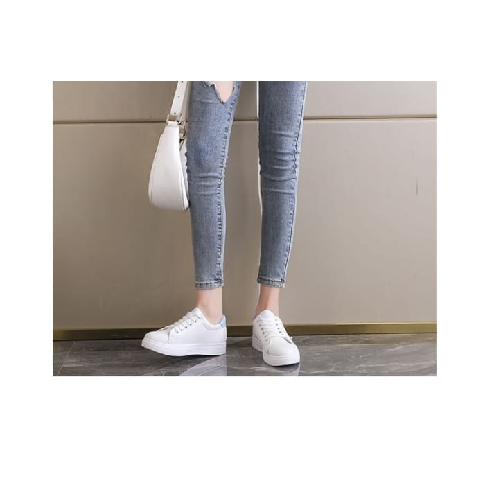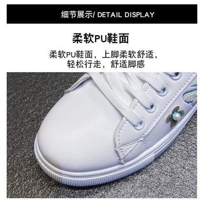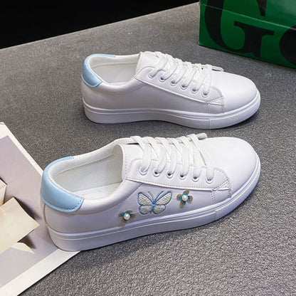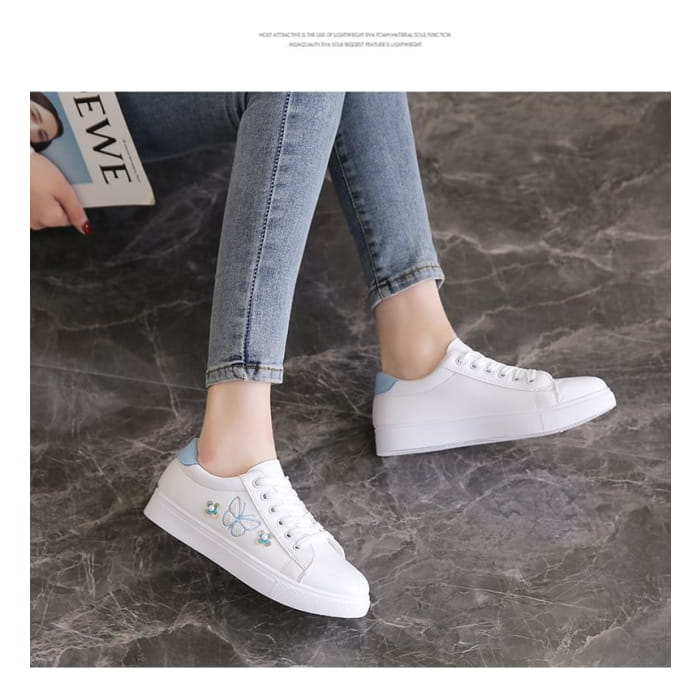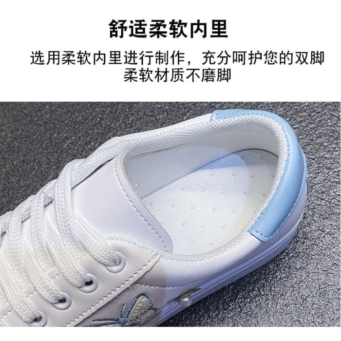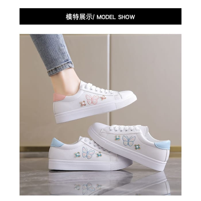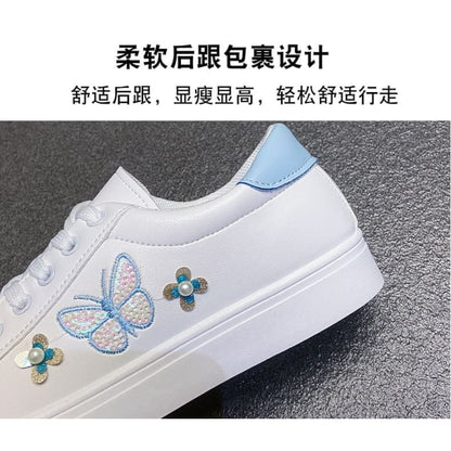Platform Butterfly Embroidered Faux Pearl Accent Lace-Up Sneakers