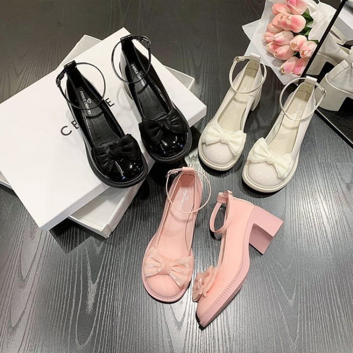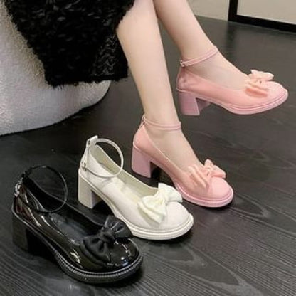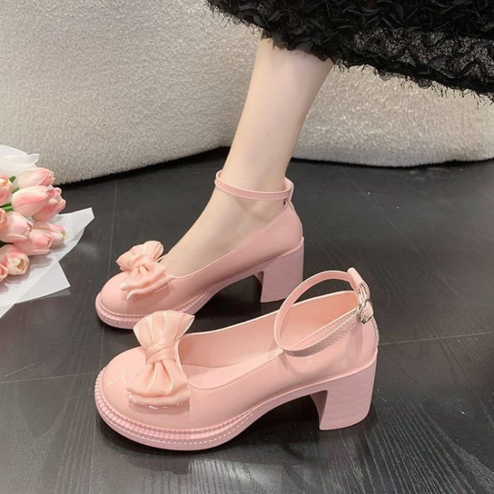 Platform Chunky Heel Bow Ankle Strap Sandals
