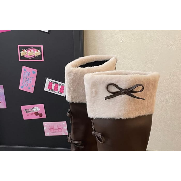 Platform Fleece Lined Bow Accent Tall Boots