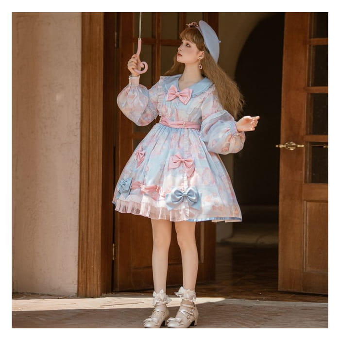 | Color: | Long Sleeve Lolita Dress - Blue & Pink |