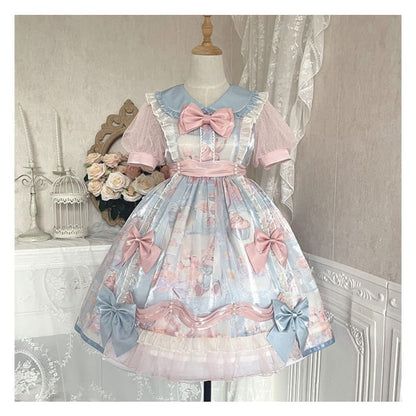 Puff-Sleeve Floral Print Bow Lolita Dress (Various Designs)