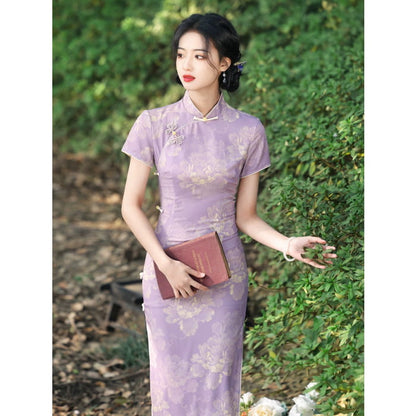 Elevate your style with the Purple Embodies Elegance Cheongsam. This timeless piece features a deep shade of purple that exudes elegance and sophistication. Perfect for any formal event or special occasion, this cheongsam is sure to make you stand out and make a statement.