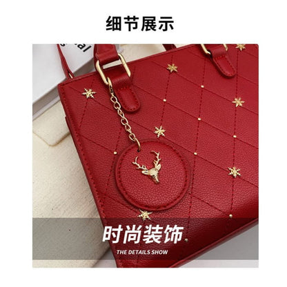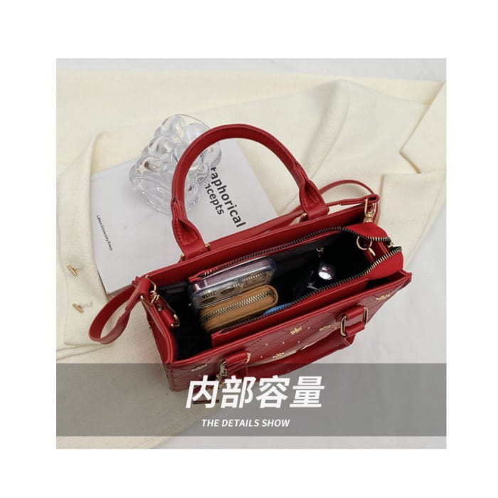Quilted Floral Studded Top Handle Crossbody Bag