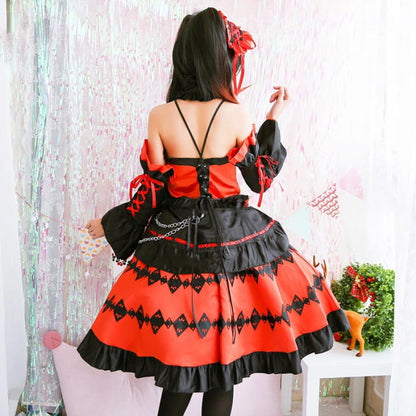 Red Lolita Princess Cosplay Lace Up Dress