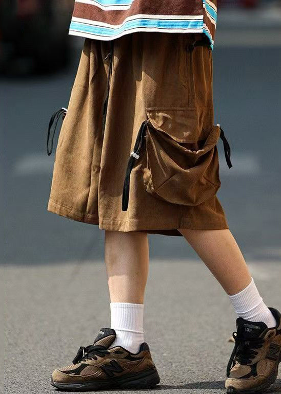 Retro Mens Shorts Summer Coffee Pockets Cotton Drawstring