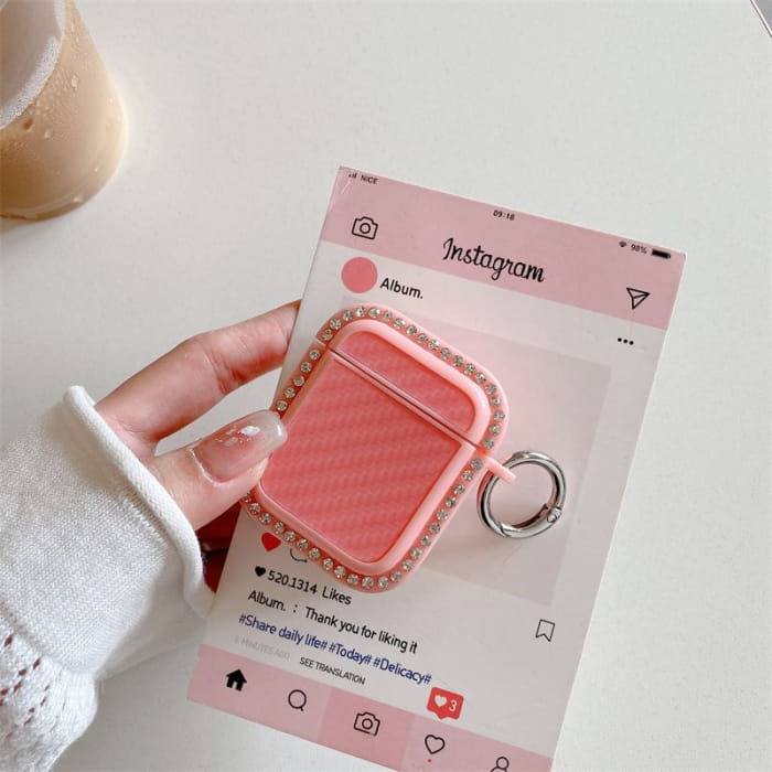 Rhinestone Carbon Fiber Textured AirPods / Pro Earphone Case Skin