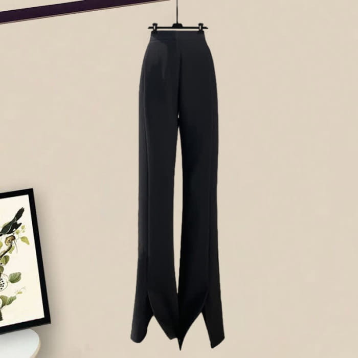 Introducing the elegant Rhombus Print Knit Vest Puff Sleeve Shirt and Split Pants set. Made with high-quality fabric and featuring a unique rhombus print, this versatile set will elevate your wardrobe and give you a chic and sophisticated look. The puff sleeves and split pants add a modern touch to this classic design.