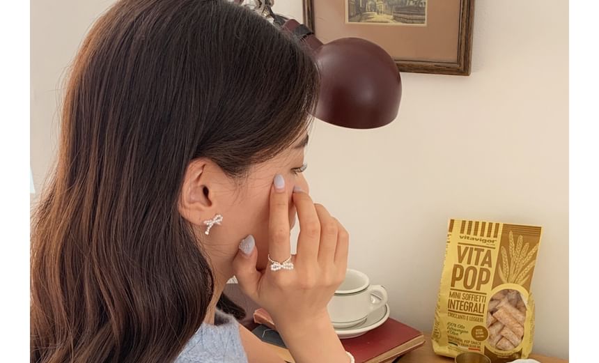 Ring Elastic 925 Bow Beaded Sterling Silver