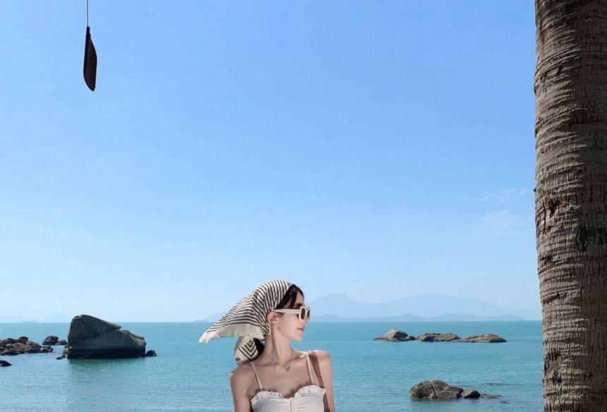Set: Plain Ruffle Cropped Cami Top + High Waist Maxi A-Line Skirt