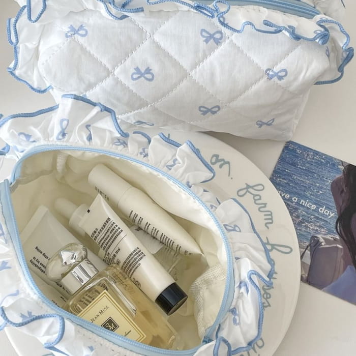 Ruffle Trim Fabric Makeup Bag / Pencil Case (Various Designs)