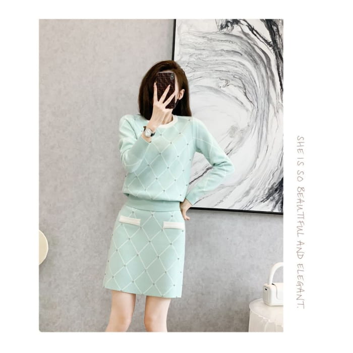 | Color: | Set Of 2 - Sweater & Skirt - Mint Blue |