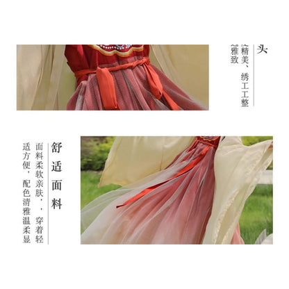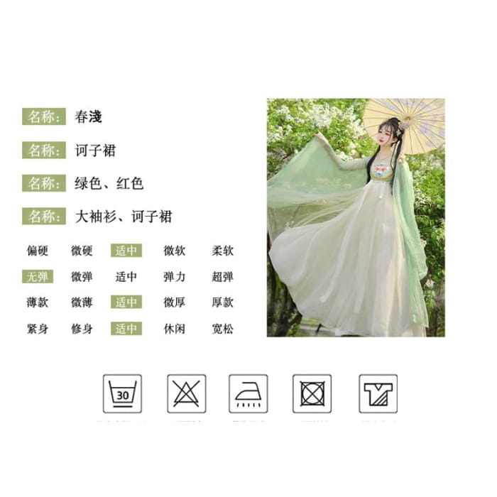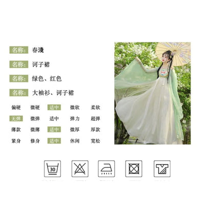 Set: Floral Embroidered Hanfu Maxi Dress + Light Jacket